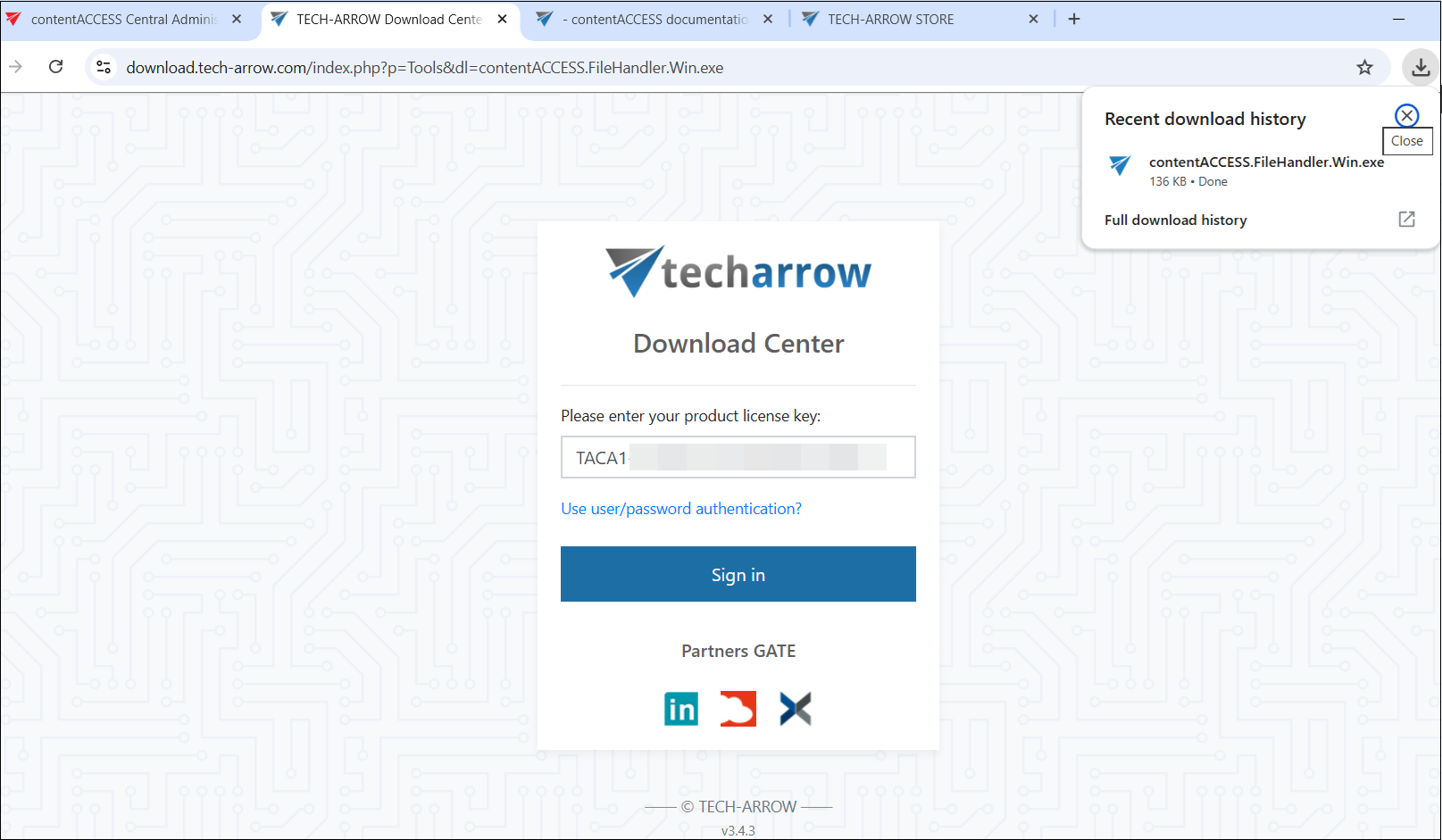 1. Download contentACCESS.FileHandler.Win.exe application from the Download Center -> Tools.
