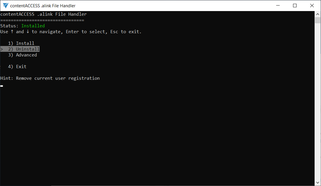 - Nothing happens when I open an .alink file – if you encounter this issue, run the application to verify the status (it should be Installed. If it shows Not installed, you need to run Install.