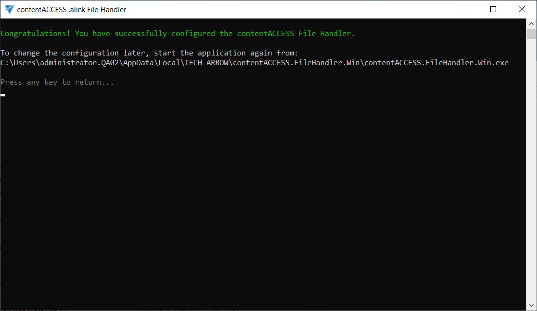 - .alink files are opening with the wrong application (e.g. PDF viewer) – this can happen if a different default app was selected by mistake. To fix this, go to Default apps in Windows, search for .alink, and select the contentACCESS File Handler application. If needed, you can manually locate it at: C:\Users\[USERNAME]\AppData\Local\TECH-ARROW\contentACCESS.FileHandler.Win\contentACCESS.FileHandler.Win.exe