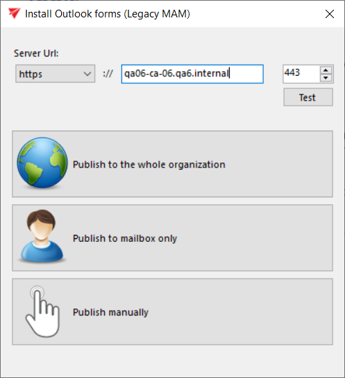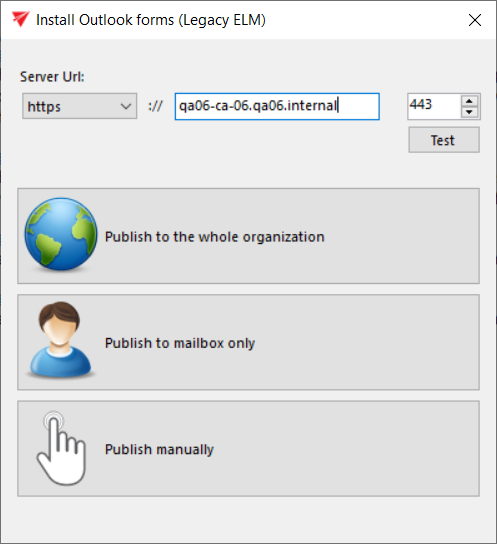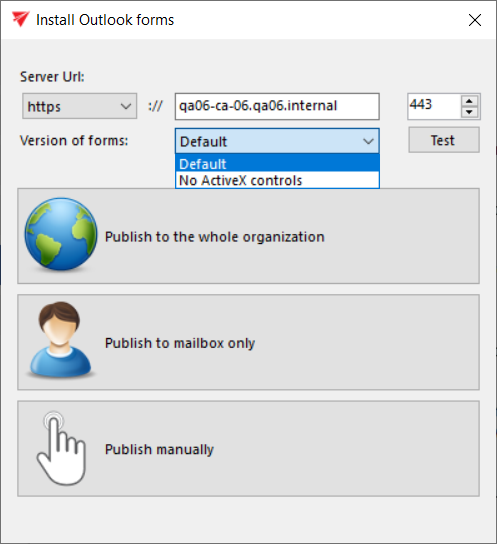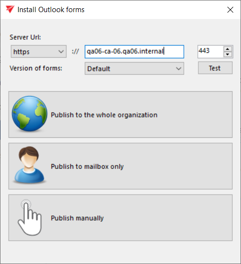 - Publish manually: you need to select a folder, where the forms will be exported together with the link pointing to the Outlook forms installation manual.