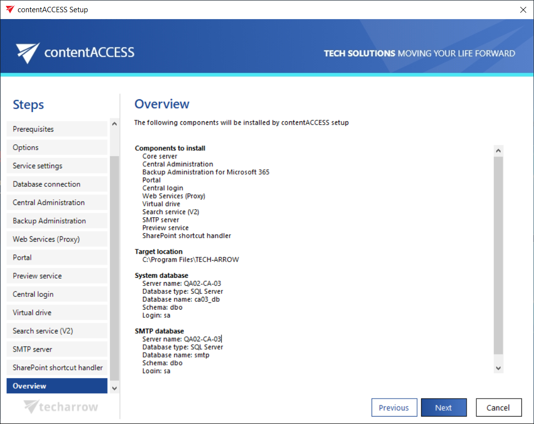 In this step the contentACCESS setup gives a general overview about the components that you have selected to install on server. Click NEXT.